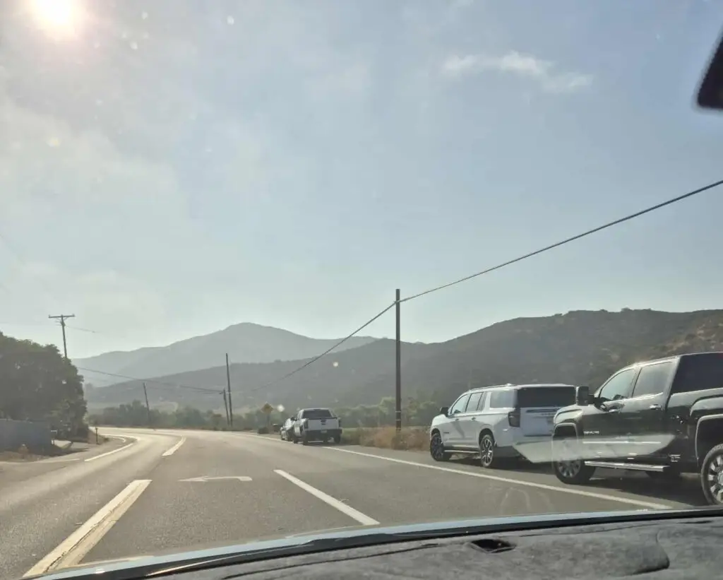 Vehicle parked in center of road in front of Dehesa School.
